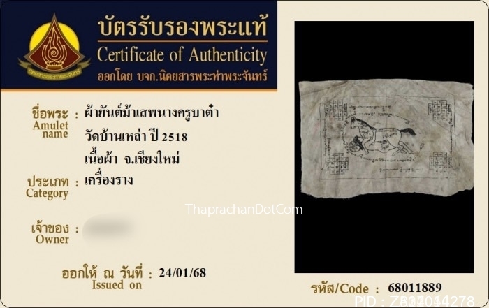 ผ้ายันต์อาจารย์ปิ่น วัดศรีษะทอง ปี2505