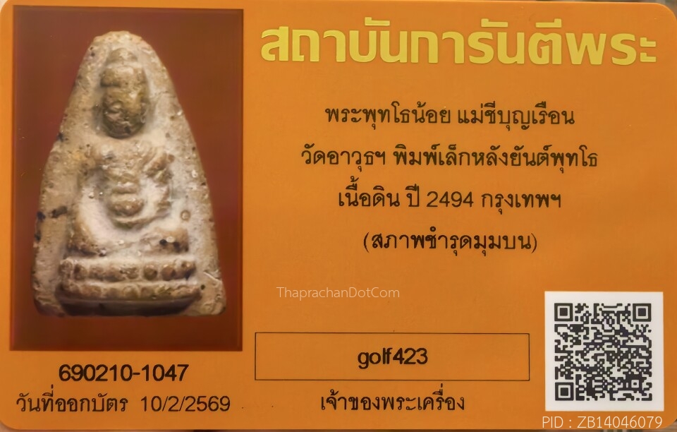 พระพุทโธน้อย พิมพ์เล็กหน้าตุ๊กตา แม่ชีบุญเรือน ปี 2494