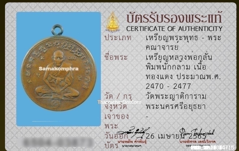 เหรียญกลม หลวงพ่อกลั่น วัดพระญาติ จ.พระนครศรีอยุธยา