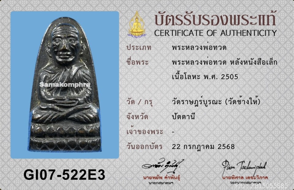 หลวงปู่ทวด พินัยกรรม ปี05 พิมพ์พระรอด