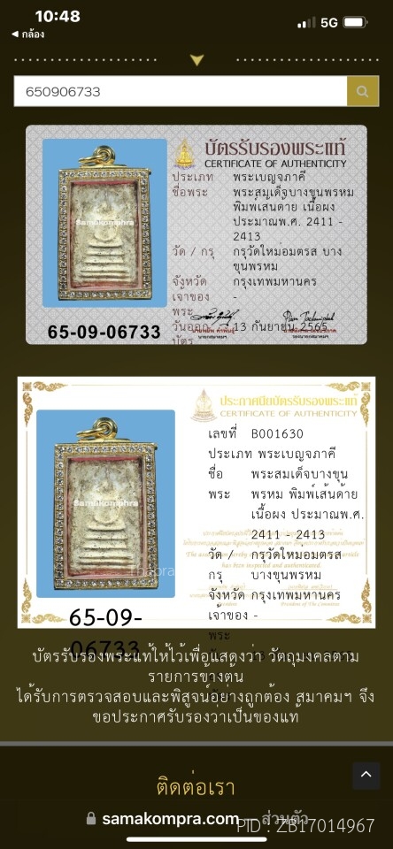 พระลีลากำแพงเม็ดขนุนกลับด้าน+ใบเซอร์