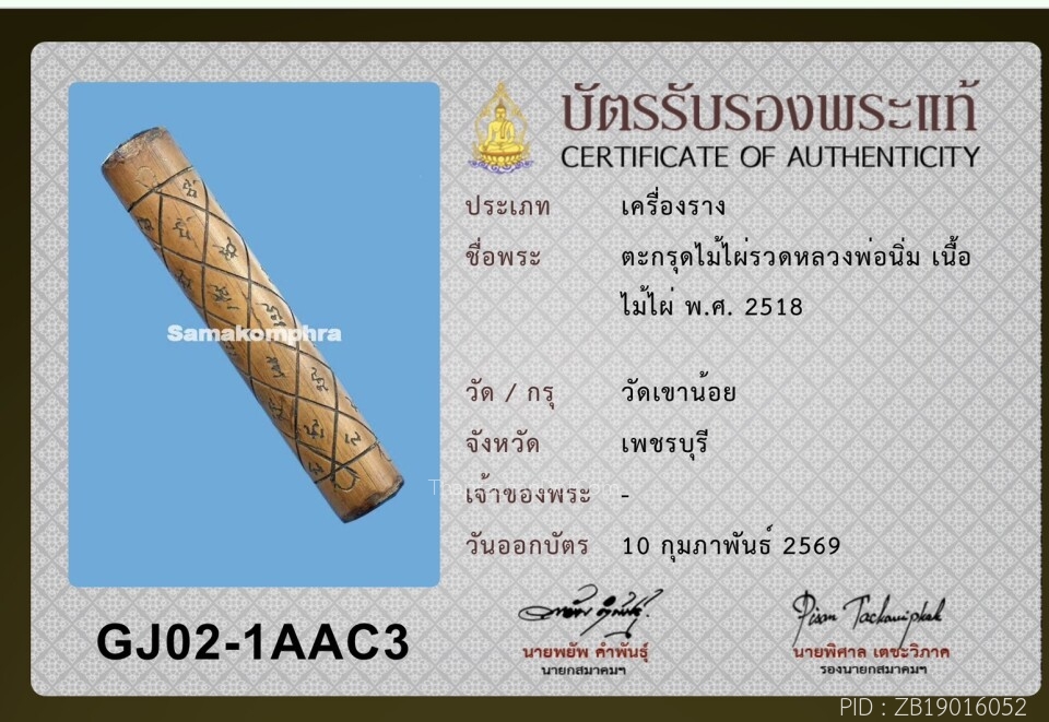 ตะกรุดไม้ไผ่รวก หลวงพ่อนิ่ม วัดเขาน้อย เพชรบุรี