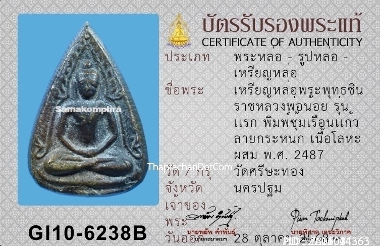รูปหล่อพระพุทธชินราช วัดสุทัศน์ รุ่นอินโดจีน ปี2485