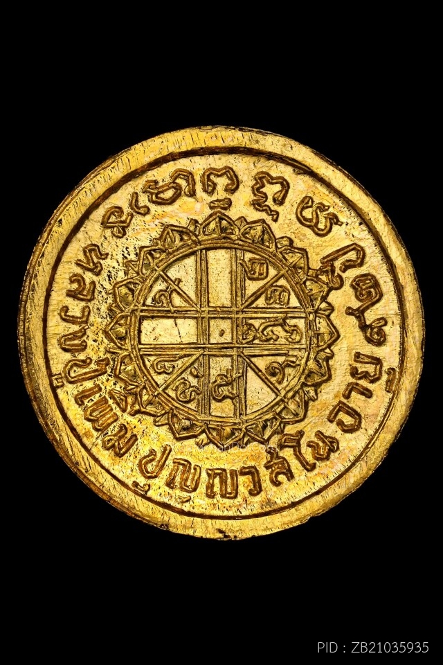 เหรียญคันฉ่อง ผ่าตะวันเหนือดวง เนื้อทองคำ พิมพ์เล็ก 3.2 cm.