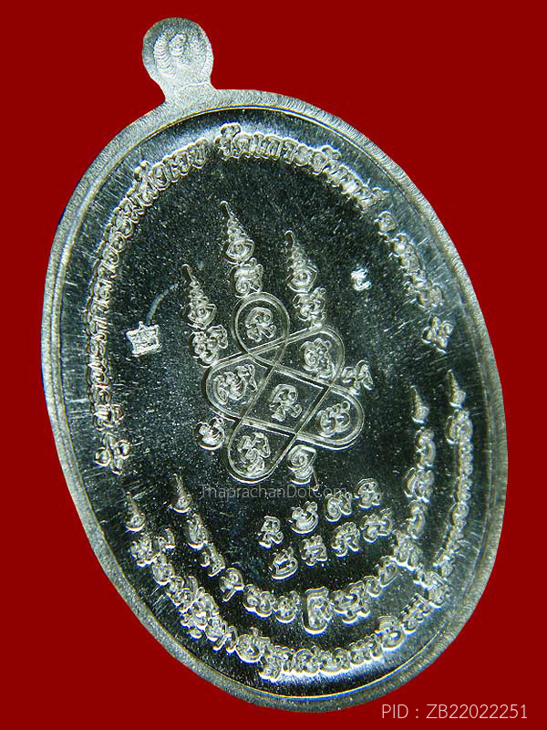 เหรียญนั่งพาน เงินลงยาชมพู เลข4 หลวงพ่ออนันต์