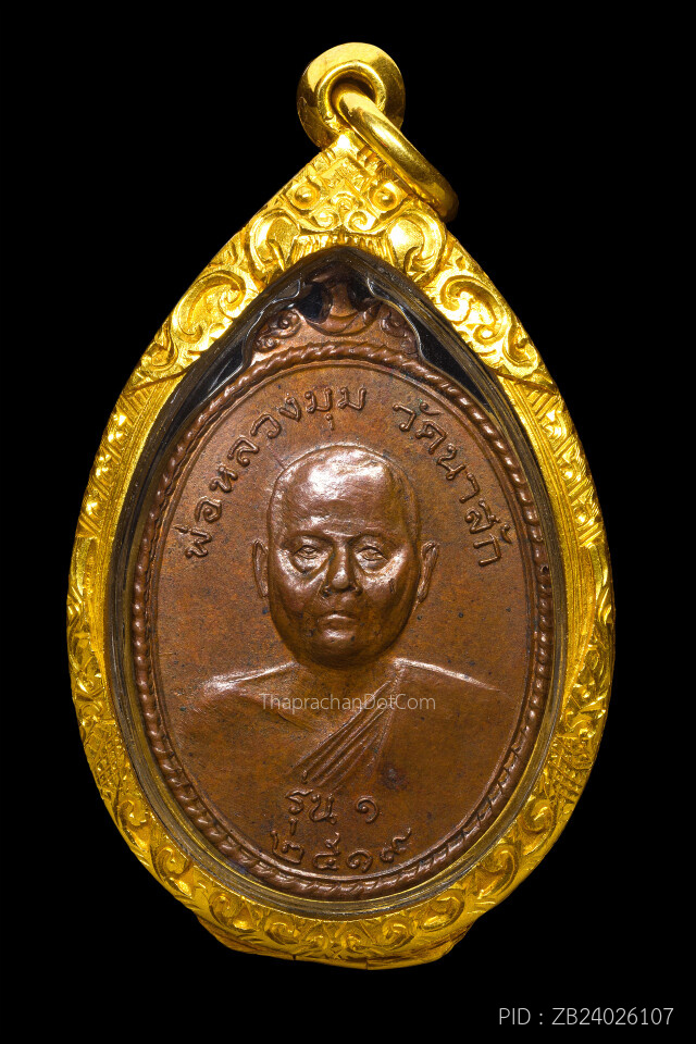 เหรียญหลวงพ่อมุม วัดนาสัก ปี๒๕๑๙ เนื้อทองแดงกะไหล่ทอง