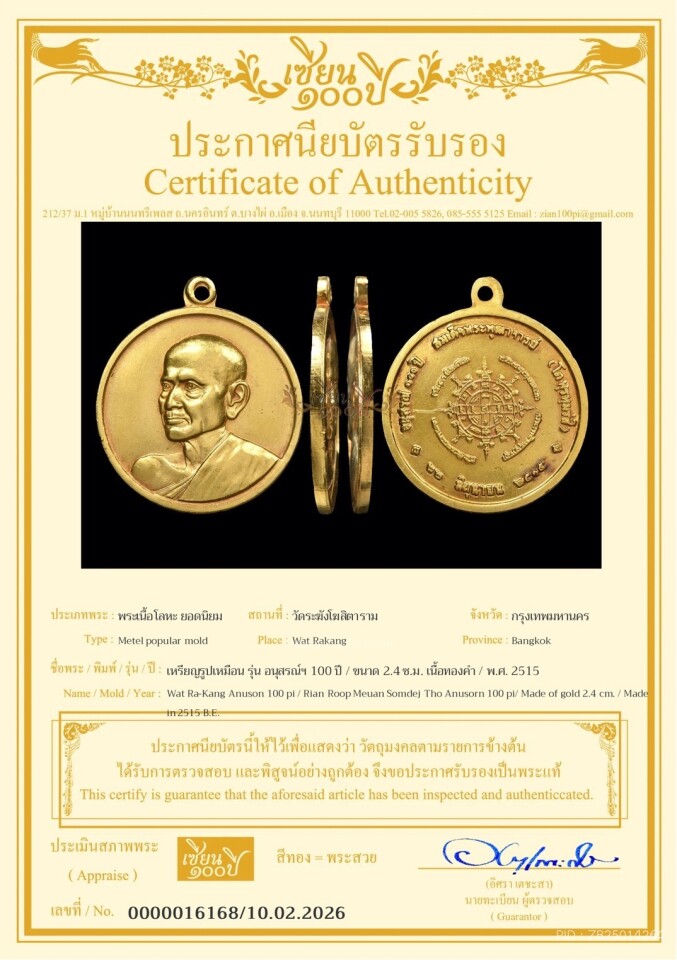 สมเด็จวัดระฆัง 100 ปี พิมพ์เศียรโตBยอดนิยม พร้อมบัตรรับรอง