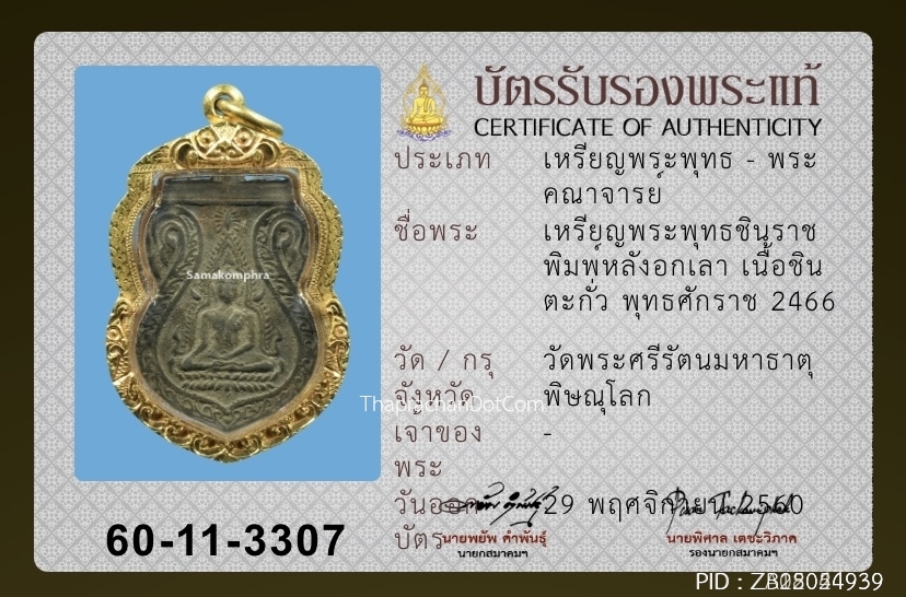 เหรียญพระพุทธชินราช หลวงปู่บุญ วัดกลางบางแก้ว ปี 2472