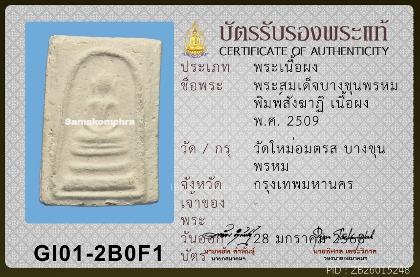 พระสมเด็จบางขุนพรหม ปี 2509 สังฆาฏิ มีหู พิมพ์ A