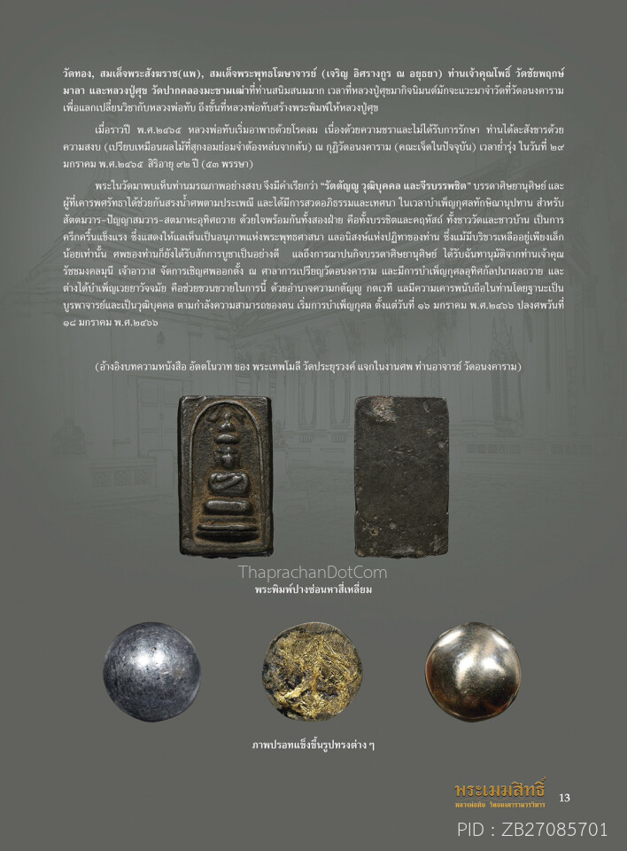 พระพิมพ์ปางซ่อนหาสี่เหลี่ยม หลวงพ่อทับ วัดอนงคาราม