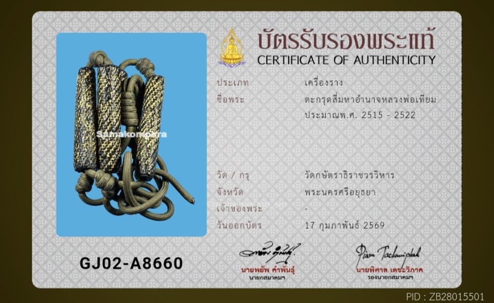 ตะกรุดสี่มหาอำนาจหลวงพ่อเทียม วัดกษัตราธิราช