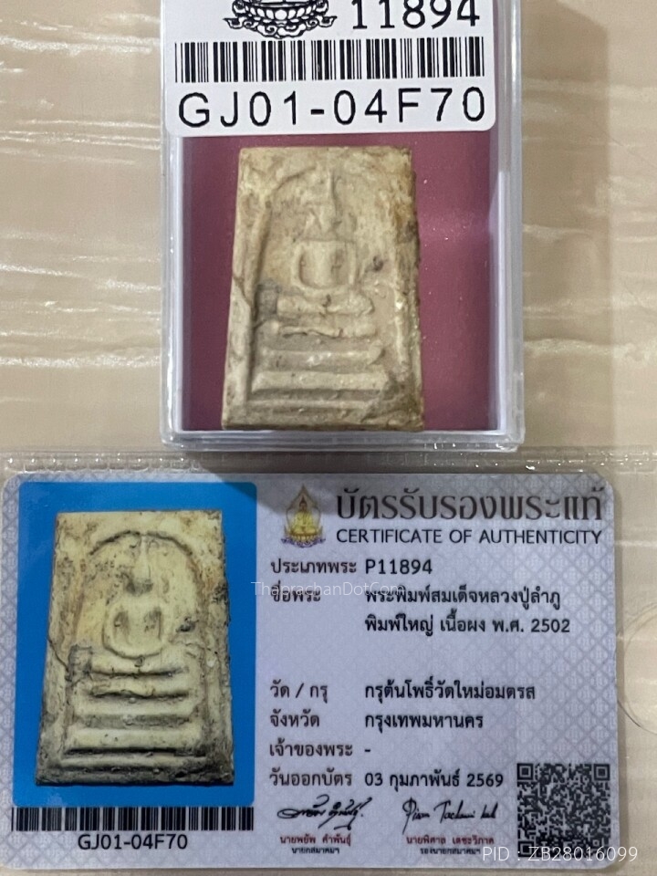+บัตรสมาคม สมเด็จพิมพ์ใหญ่ หลวงปู่ลำภู ลงกรุต้นโพธิ์