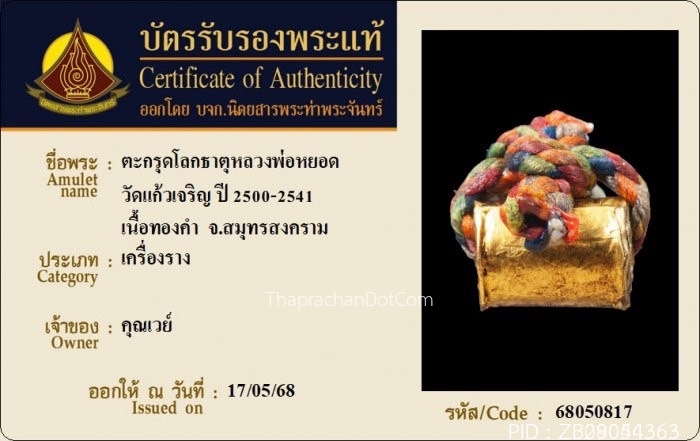 ตะกรุดโพธิ์กลับ หลวงพ่ออั๊บ วัดท้องไทร ปี2549 เนื้อทองคำ