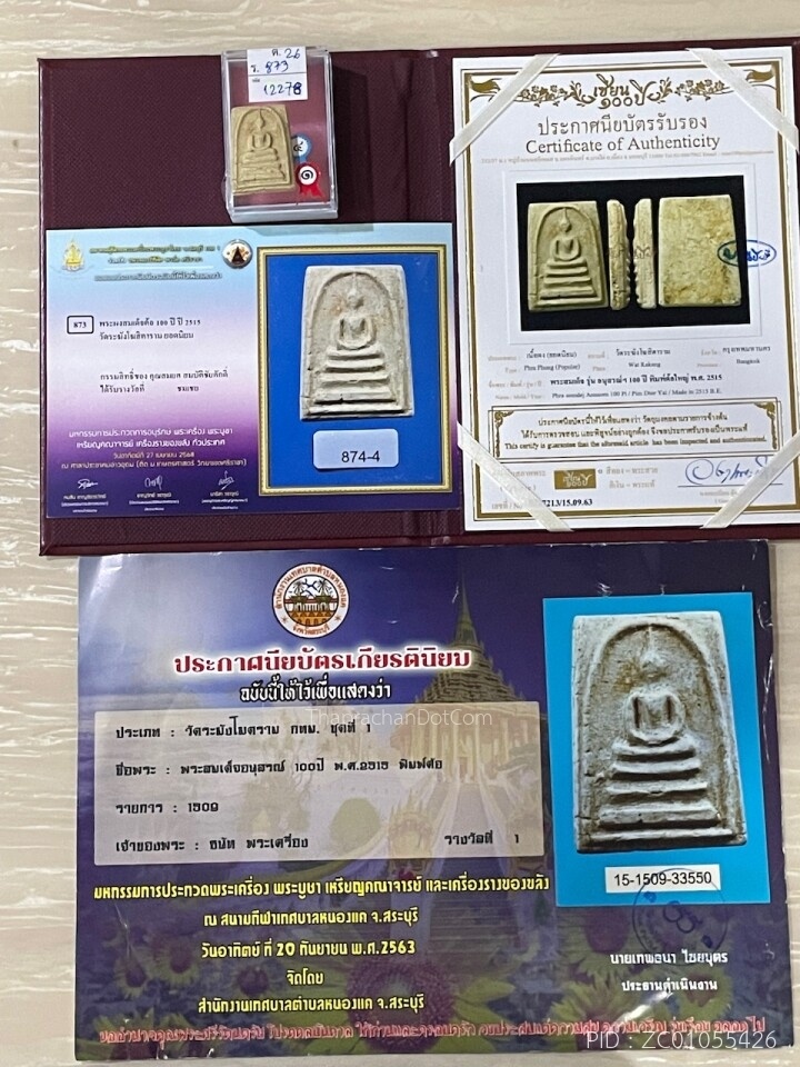 บัตรรับรองพระแท้ สมเด็จบางขุนพรหม 31 พิมพ์ใหญ่ ตรายางสามดวง