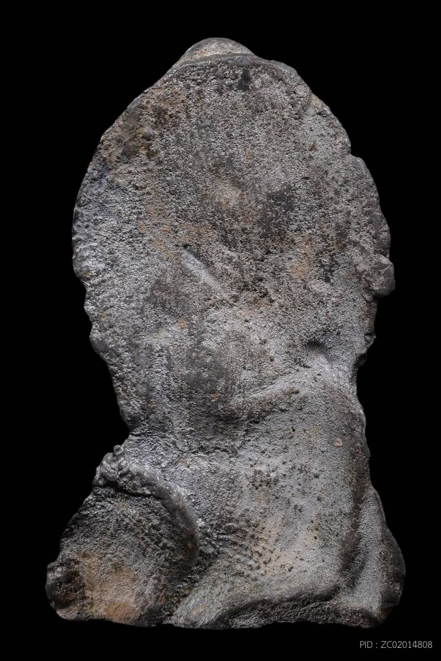 พระเทริดขนนก เนื้อตะกั่วสนิมแดง กรุวัดท่าวุ้ง จ.ลพบุรี