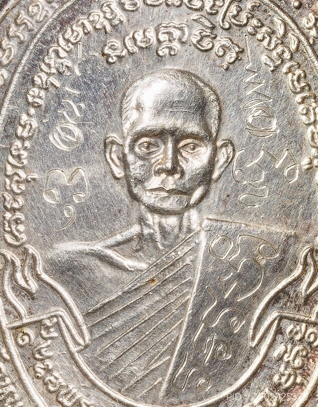 เหรียญนั่งพาน หลวงปู่แผ้ว ปวโร วัดรางหมันปี 2551 เนื้อเงิน