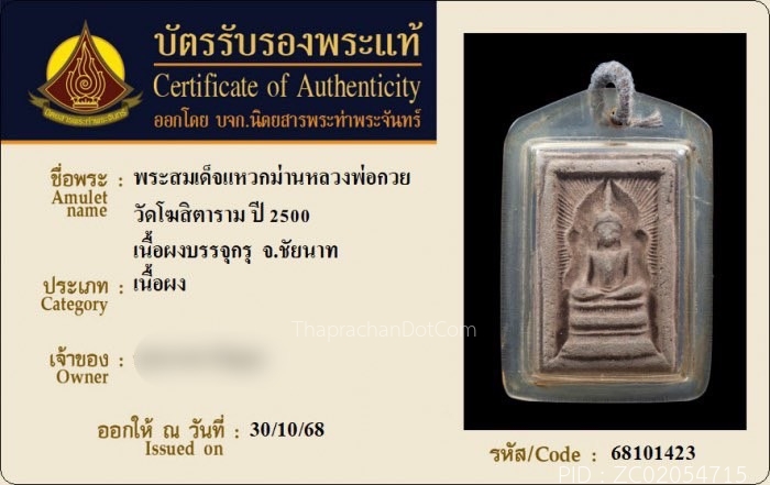 พระสมเด็จแหวกม่านหลวงพ่อกวย วัดโฆษิตาราม จ.ชัยนาท