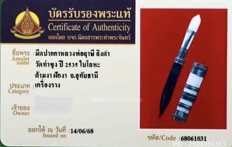 มีดหมอชาตรีหลวงพ่อฤาษีลิงดำ วัดท่าซุง จ.อุทัยธานี ปี2535
