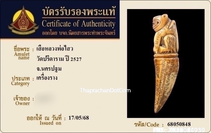 เสือกระดูกแกะหลวงพ่อเรือน วัดบางเหี้ย จ.สมุทรปราการ