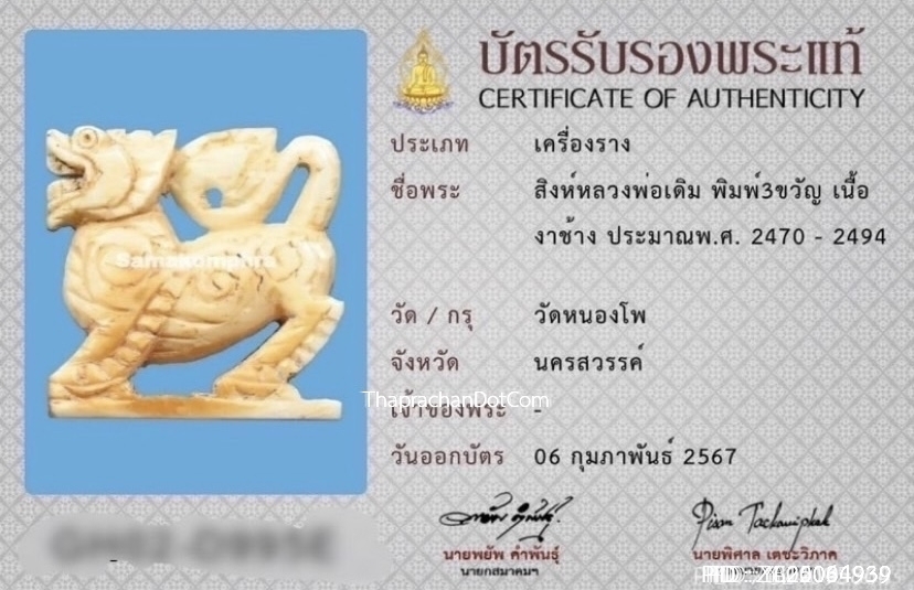 สิงห์สามขวัญหลวงพ่อเดิม วัดหนองโพ จ.นครสวรรค์