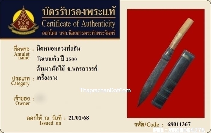 มีดหมอหลวงพ่อกัน วัดเขาแก้ว จ.นครสวรรค์