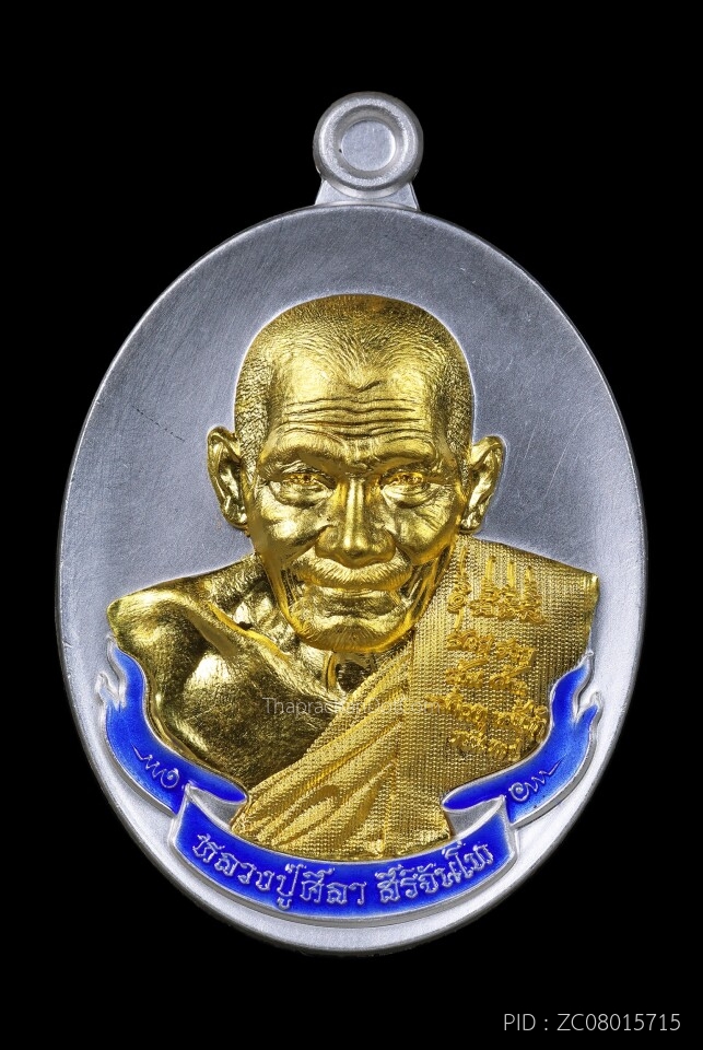 เหรียญยอดเศรษฐี หลวงปู่ศิลา เนื้อเงินลงยาเขียวหน้ากากทองคำ