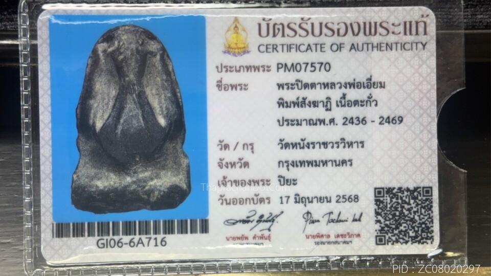 พระปิดตาหลวงปู่เอี่ยม วัดหนัง พิมพ์สังฆาฏิ
