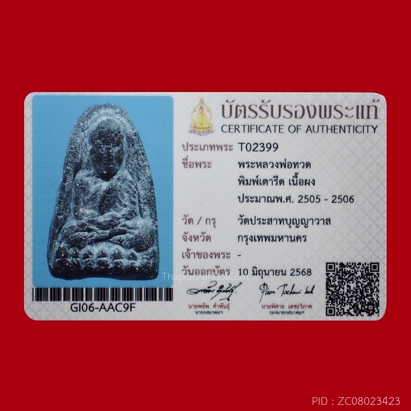 หลวงปู่ทวด ล้อพิมพ์วัดดีหลวง วัดปราสาทฯ ปี 2506