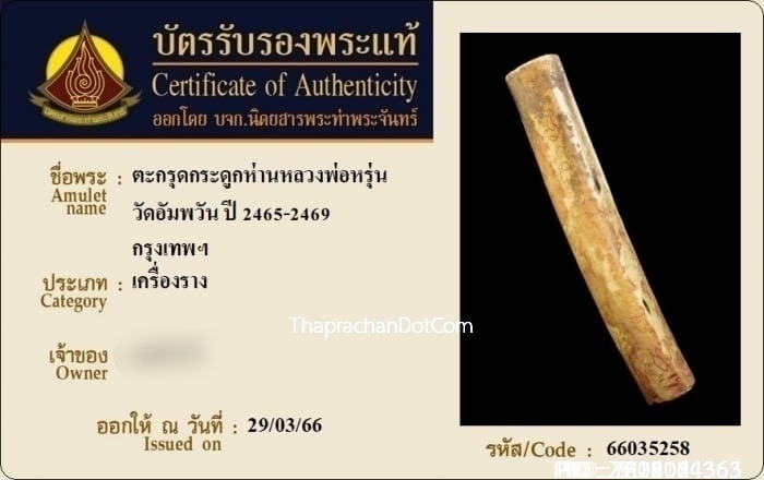 ตะกรุดโพธิ์กลับ หลวงพ่ออั๊บ วัดท้องไทร ปี2549 เนื้อทองคำ