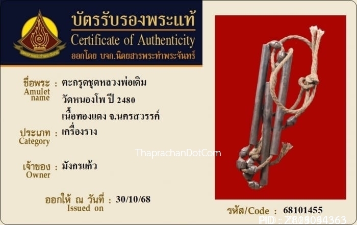 ตะกรุดชุดลูกคั่นหลวงพ่อเดิม วัดหนองโพ จ.นครสวรรค์