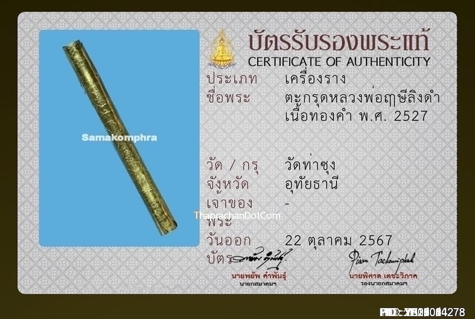 ตะกรุดเมฯ หลวงพ่อฤาษีลิงดำ วัดท่าซุง เนื้อทองคำ