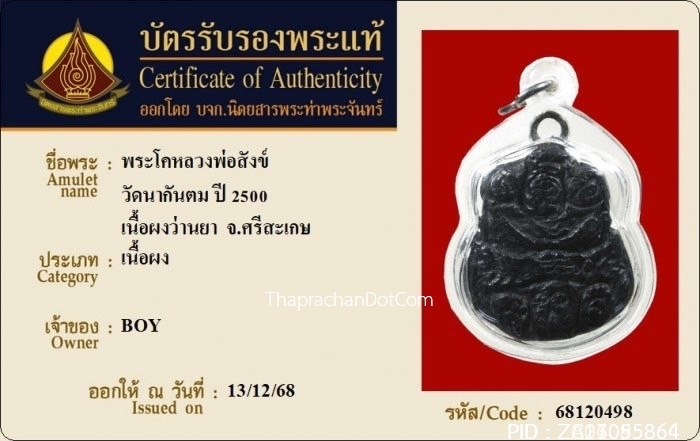 พระนางพญาหลวงปู่เผือก วัดกิ่งแก้ว จ.สมุทรปราการ