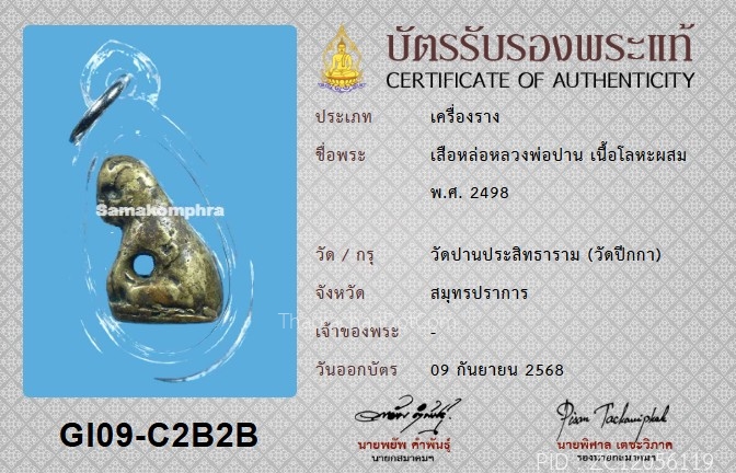 เสือหลวงพ่อปาน คลองด่าน วัดบางเหี้ย พร้อมบัตรสมาคม