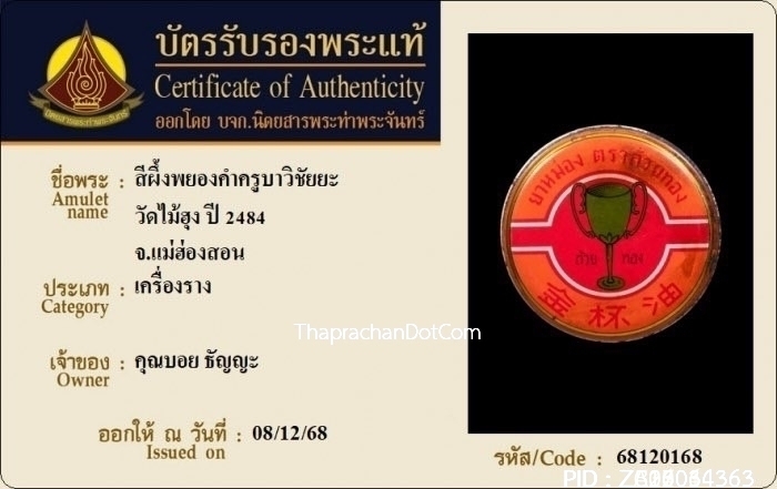 สีผึ้งหลวงพ่อทาบ วัดกระบกขึ้นผึ้ง ฝังตะกรุดทองคำ