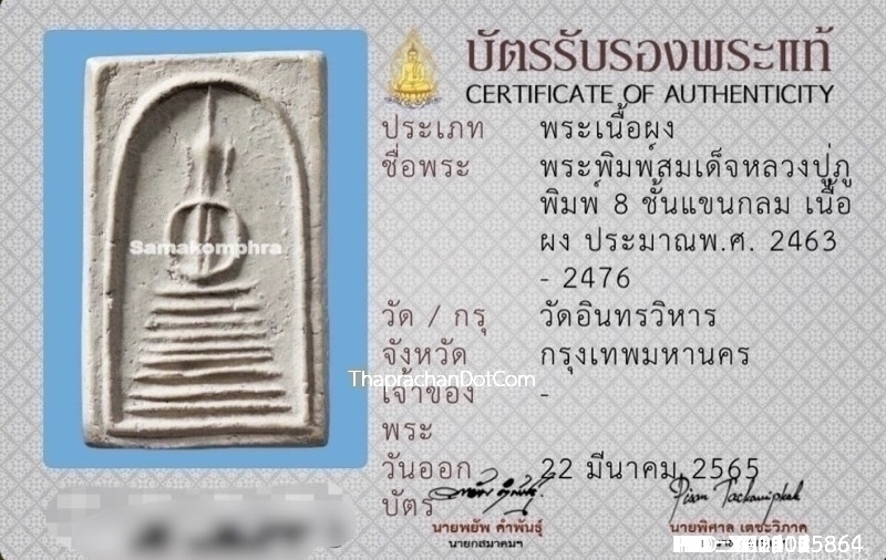 พระสมเด็จหลวงปู่ภู พิมพ์แปดชั้นแขนกลม