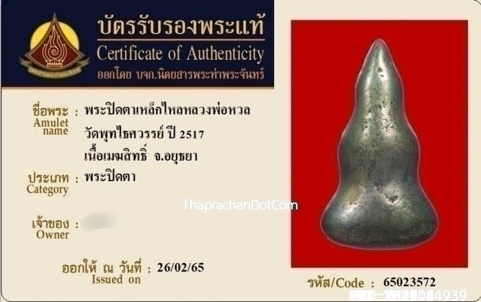 พระปิดตาเนื้อเมฆสิทธิ์หลวงพ่อหวล วัดพุทไธศวรรย์