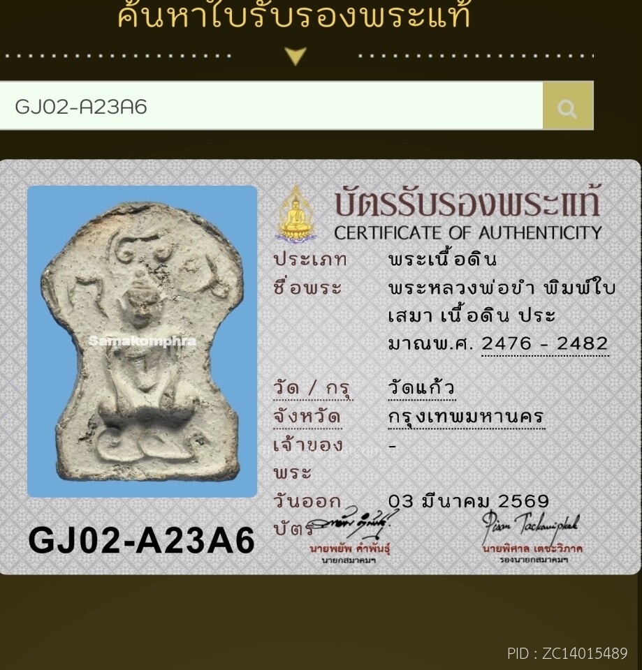 พระเนื้อดิน หลวงพ่อขำ วัดแก้ว ปี2476-2482 (พิมพ์ใบเสมา)