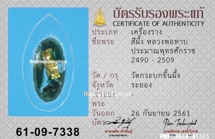 สีผึ้งหลวงพ่อทาบ วัดกระบกขึ้นผึ้ง ฝังตะกรุดทองคำ