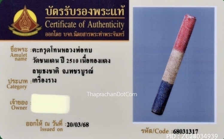 ตะกรุดมัชจุราชหลวงพ่อทา วัดพะเนียงแตก จ.นครปฐม