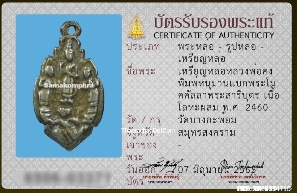 ล็อคเก็ตพระพุทธเจ้า หลวงพ่อผินะ วัดสนมลาว จ.สระบุรี