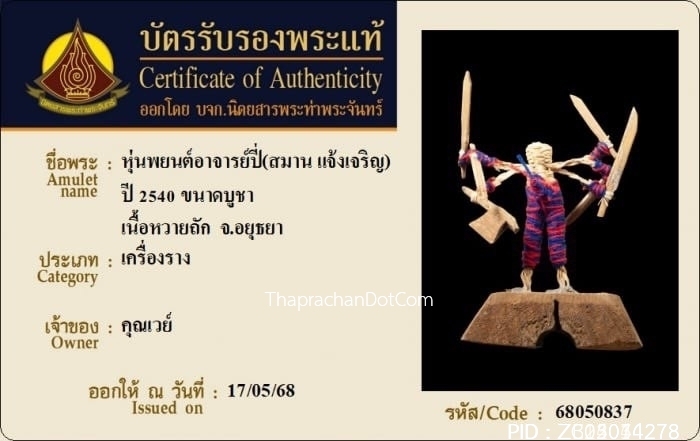 สี่หูห้าตาครูบาบุญยัง เนื้อไม้ม่วงคำ ปี2545
