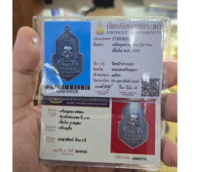 เหรียญหลวงพ่อเดิม วัดหนองโพ ปี2483 บัตรสมาคม