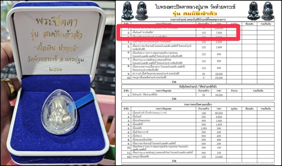 "เนื้อเงิน" ราคาจอง พระปิดตา 100 ปี วัดห้วยจระเข้ No.24
