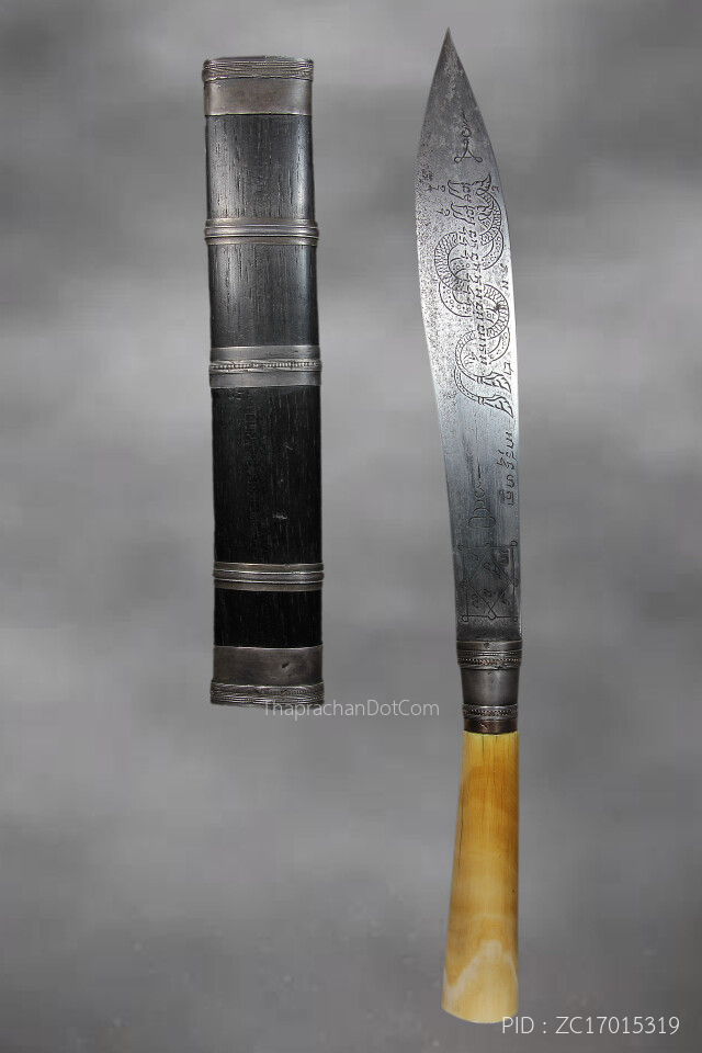 มีดควาญช้างหลวงพ่อเดิมตอกลายพิเศษยันต์ตรี