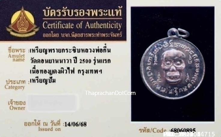 เหรียญพรายกระซิบหลวงพ่อกึ๋น วัดดอนยานนาวา จ.กรุงเทพฯ