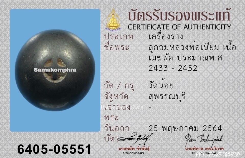หลวงพ่อเนียม พิมพ์พระประธาน เนื้อตะกั่ว วัดบ้านสูตร