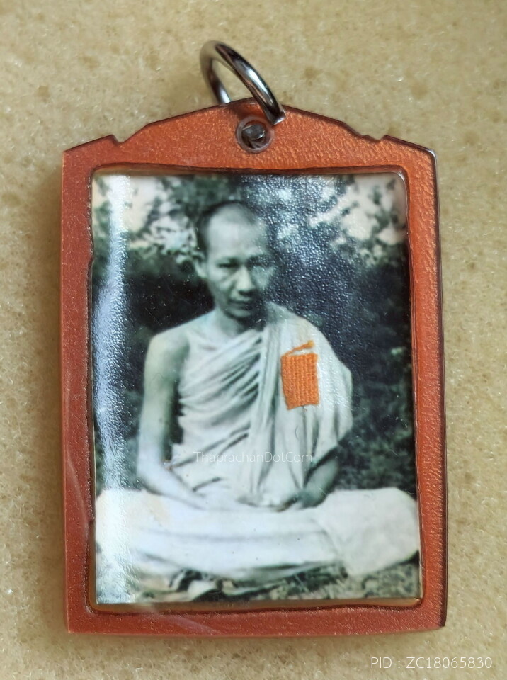 รูปหลวงพ่อเกษม ปี 18 เลี่ยมเก่า กระดาษหนังไก่ มีจีวร