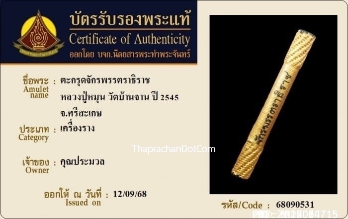 ตะกรุดหลวงพ่อผัน วันอินทาราม จ.นนทบุรี