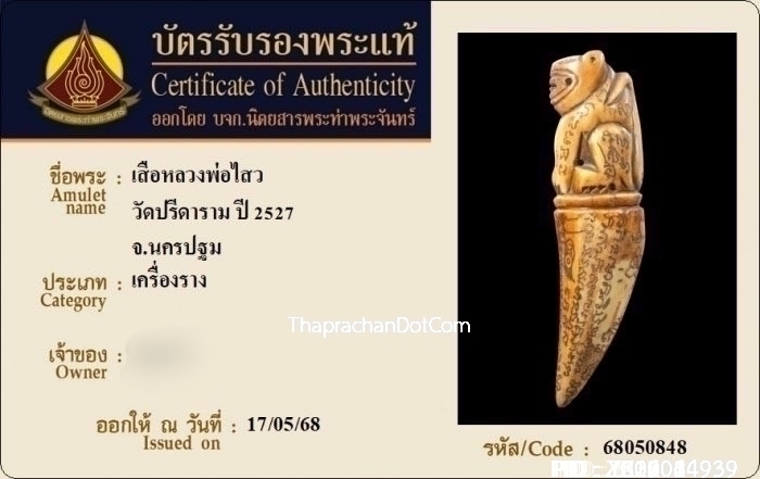 ปลัดขิกเสือบินหลวงพ่อไสว วัดปรีดาราม จ.นครปฐม