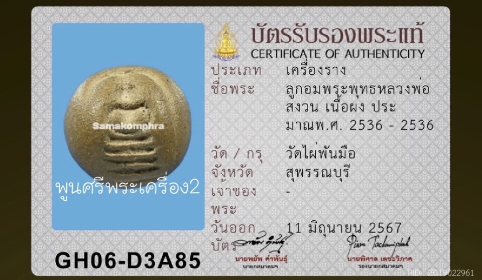หลวงพ่อสงวน พิมพ์หนุมาน วัดไผ่พันมือ พร้อมบัตรสมาคม